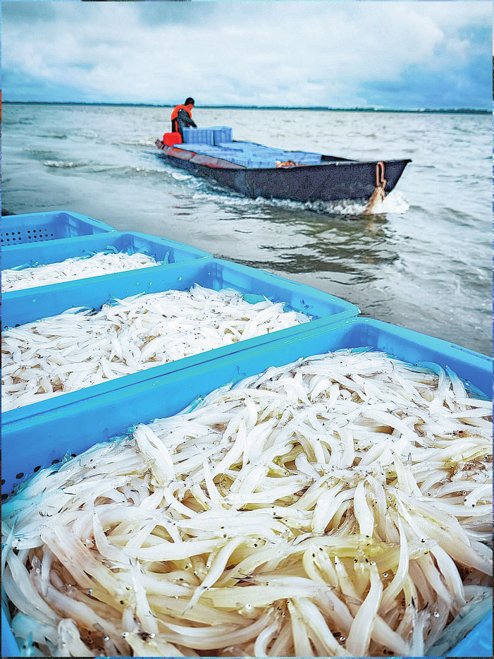 拍攝結(jié)束時(shí),太陽正從東方冉冉升起,一條條滿載銀魚的漁船返航,一如當(dāng)?shù)氐你y魚產(chǎn)業(yè),乘風(fēng)破浪,立于潮頭。